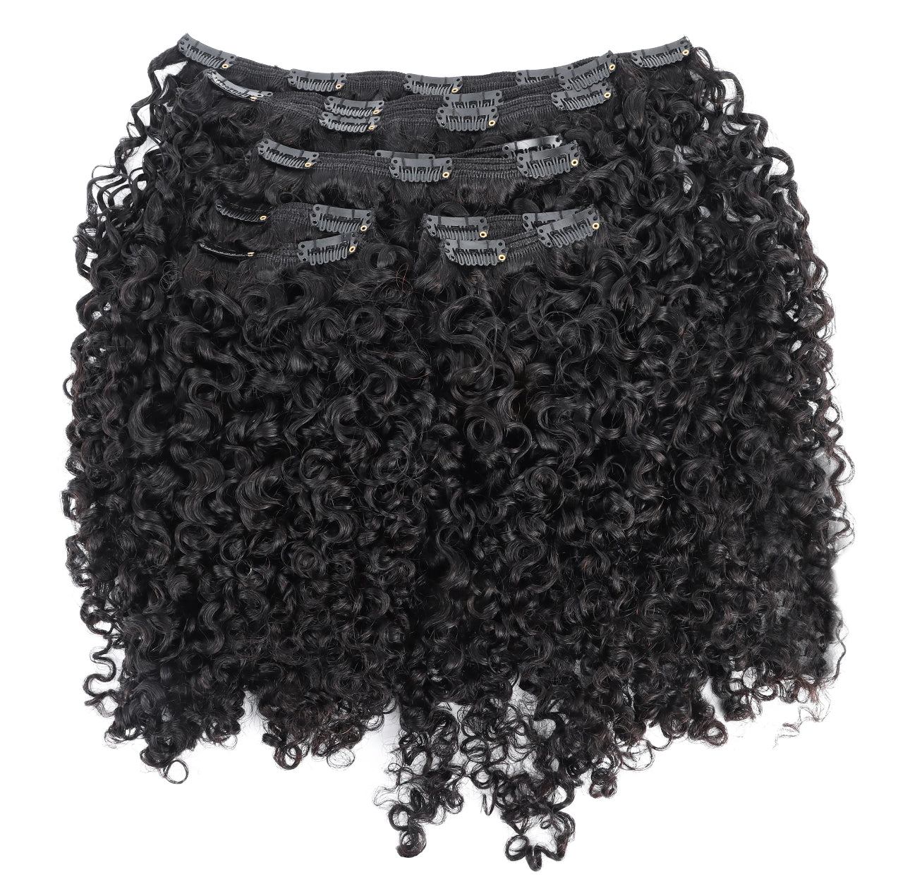 Our curly clip-in extensions are a versatile an temporary solution for adding volume, length, and texture to your natural hair. Made from 100% real human hair, these extensions can be styled just like your own hair, allowing for heat styling, coloring, and blending with your natural curls. They come with clips for easy and secure application, making them ideal for those looking for a quick transformation without permanent changes. These extensions blend seamlessly with curly hair types, offering natural look and feel.